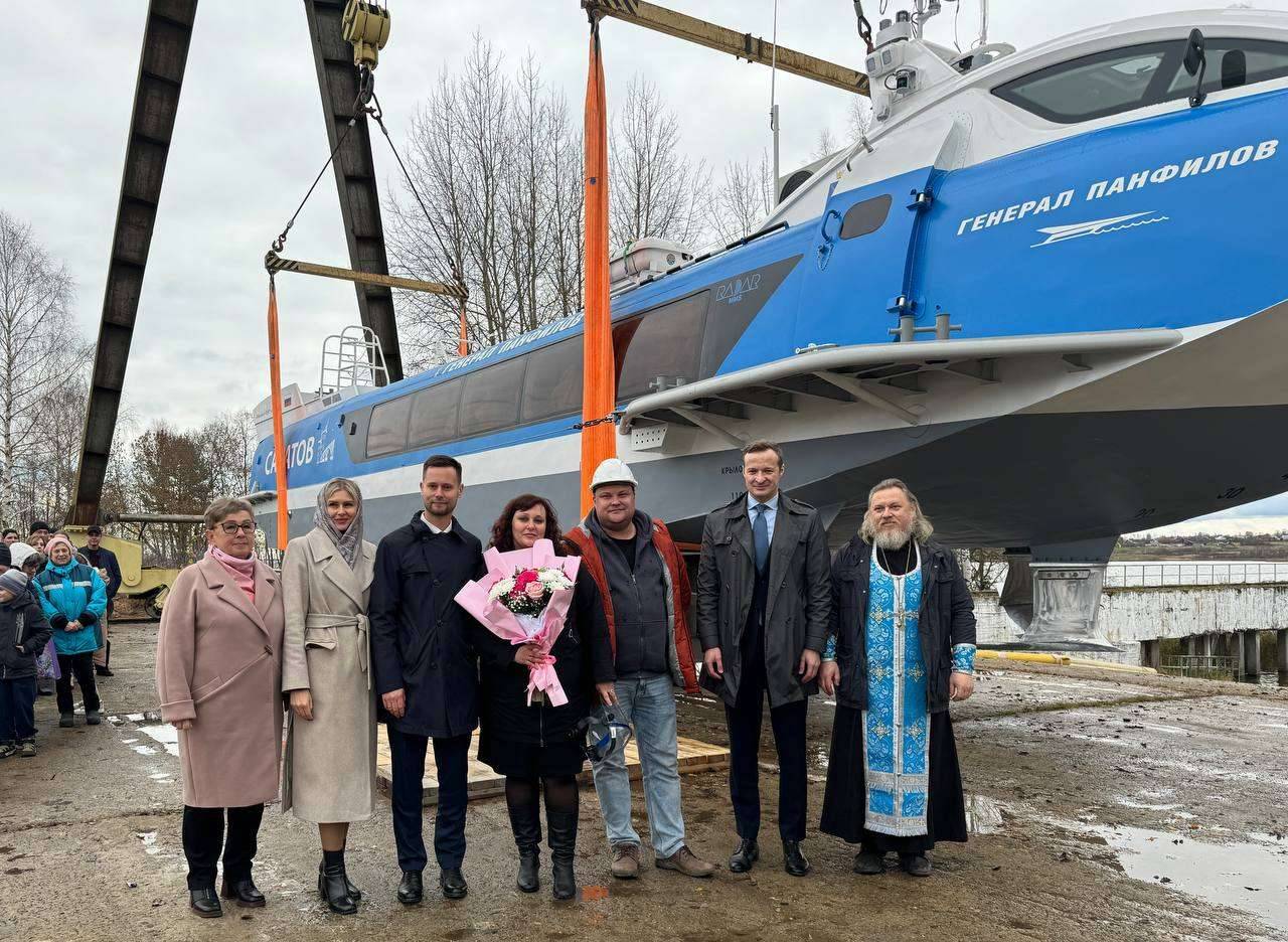 30 октября на производственном комплексе «ЦКБ по СПК им. Р.Е. Алексеева» в Чкаловске состоялся торжественный спуск на воду нового скоростного пассажирского судна на подводных крыльях «Валдай 45Р» для Саратовской области. Это уже 21-е судно серии.Новый теплоход получил имя «Генерал Панфилов» в честь Ивана Васильевича Панфилова, уроженца Саратовской области, героя Великой Отечественной войны.